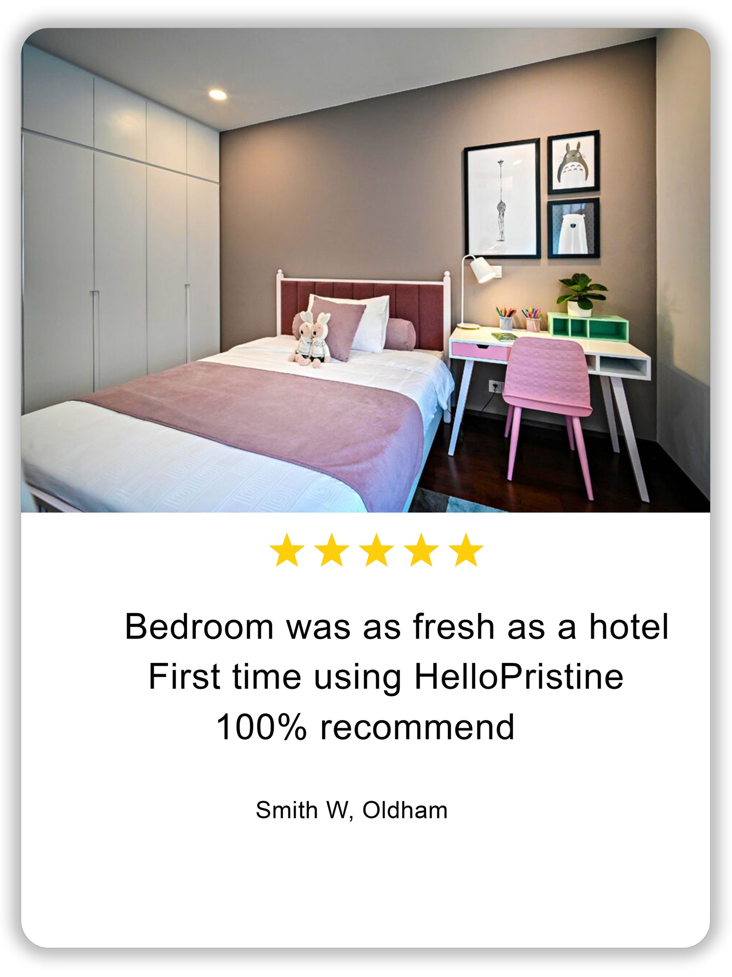 I am thoroughly impressed with HelloPristine’s first visit to my flat. The clean was immaculate, beautifully scented, and elevated with thoughtful finishing touches such as folded toilet paper. I am thoroughly impressed with HelloPristine’s first visit to my flat. The clean was immaculate, beautifully scented, and elevated with thoughtful finishing touches such as folded toilet paper. I am thoroughly impressed with HelloPristine’s first visit to my flat. The clean was immaculate, beautifully scented, and elevated with thoughtful finishing touches such as folded toilet paper.